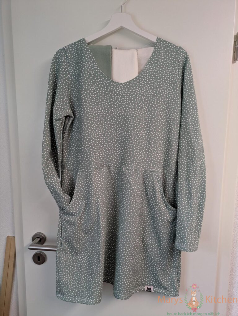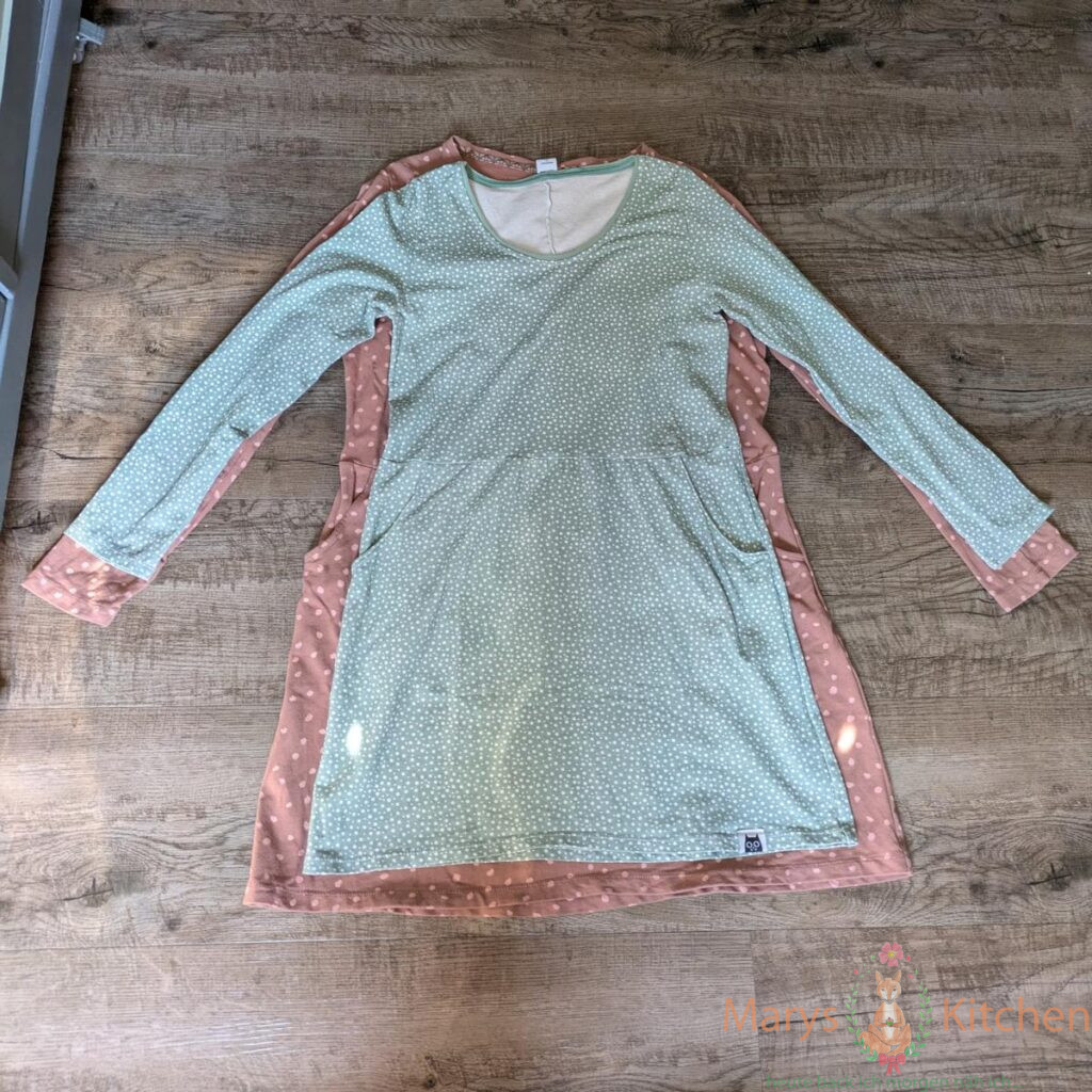 Naja und dann gibt’s Mischformen wie mich. Es gab Zeiten, da hatte ich so wenig Kleidung, dass ich die paar guten Teile schonte und ja keine Katze darauf haben wollte. Insbesondere zur Waldkindergartenzeit musste ich mich täglich nach der Arbeit umziehen. Und da sind Jogginghosen einfach mega bequem. Meine Nachbarin (und gute Freundin) trägt zum Beispiel nie Hosen. Zur Hause aber andere Kleider als auf der Arbeit. Hauskleider. Bequeme Sweatkleider. Das wollte ich auch. Da fand ich Frau Fannie von Studio Schnittreif beim Makeristausverkauf.