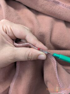 Für den Streberstreifen nutze ich rutschigen Viskosejersey – das ging ein bisschen schief. Aber es ist eben auch nur der Streberstreifen, also egal. Meine anderen Säume sind dafür alle sehr gleichmäßig und hübsch geworden.