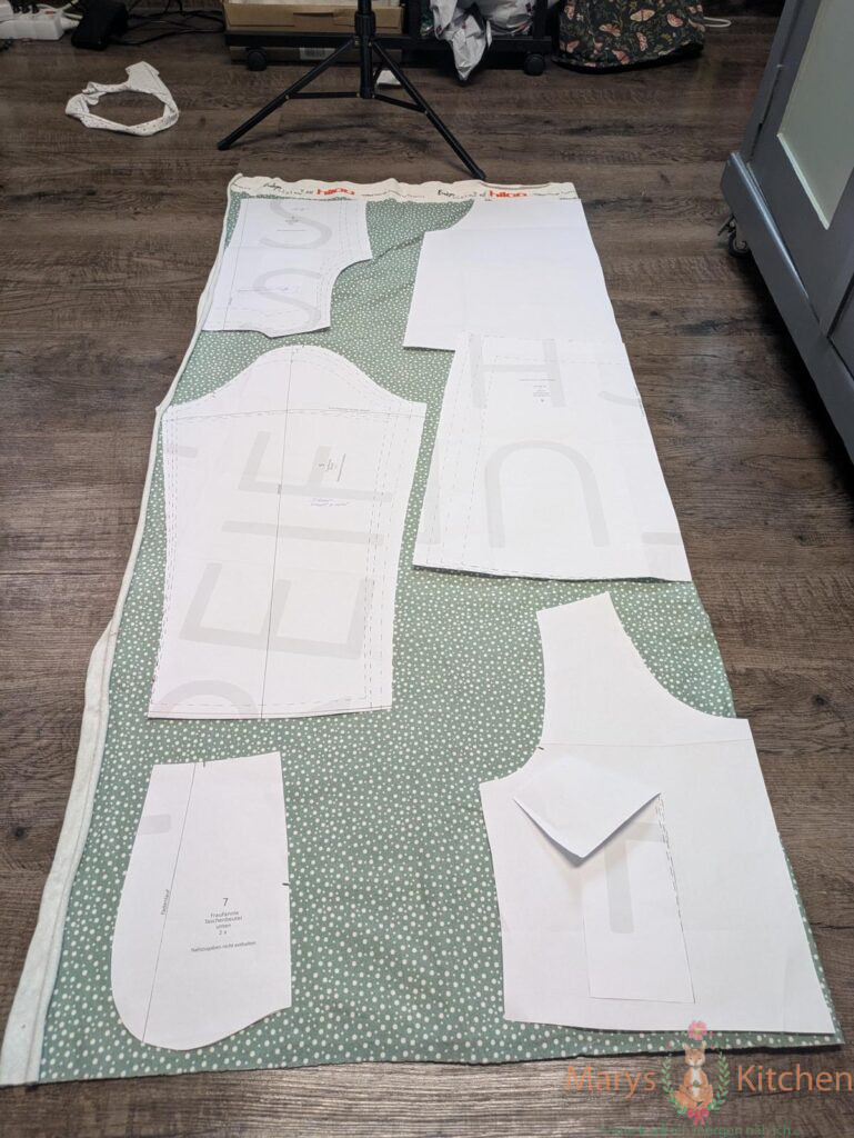 Eigentlich wollte ich den Rücken aus einem Teil schneiden, aber irgendwie habe ich beim Zuschnitt nicht aufgepasst: ich hasse es, wenn die Nahtzugabe nicht im Schnitt dabei ist und ich aufpassen muss….hier habe ich die Schere einfach falschherum gehalten…. So musste ich ein bisschen schieben und den Rücken doch mit der offiziellen Teilungsnaht nähen.