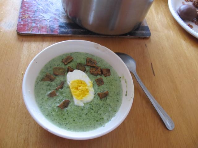 Das zweite drei-Länder-Kochen: spanische Vorspeise-finnischer Hauptgang-deutscher Nachtisch   FINNISH SPINACH SOUP for 4 portions: 300 gr fresh or defrosted spinach* 3 tbs butter 1 liter full-cream milk ½ dl flour …