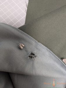 Ich dachte, ich bin schlau und wählte den wasserabweisenden Canvas (Canvas Johannt) von Snaply als Haupt- und Innenstoff. Einerseits eine gute Wahl was Regen angeht – Rucksack schaut nass aus, ist aber innen trocken – genau das wollte ich! Anderseits ist der Stoff aber nicht lichtecht und hatte nach der ersten Woche die ersten hellen Ausfärbungen und inzwischen ist er ziemlich heller! Sehr sehr ärgerlich.