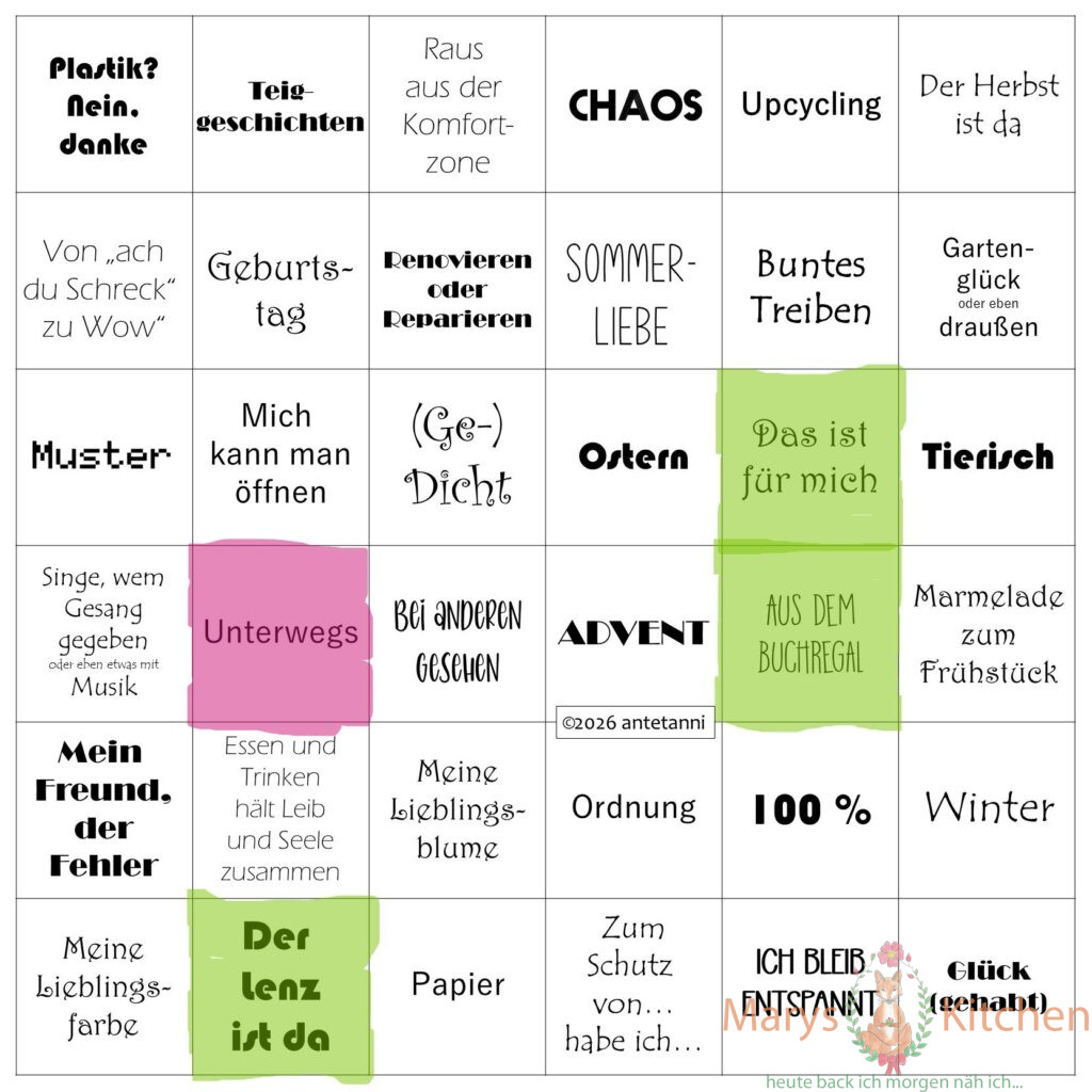 Mein 4.Kästchen beim diesjährigen Bingo von Antetanni: „Unterwegs“!