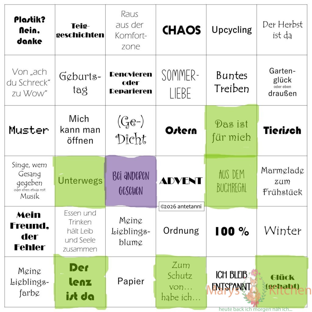 Mein 7.Bingofeld beim diesjährigen Bingo von Antetanni :