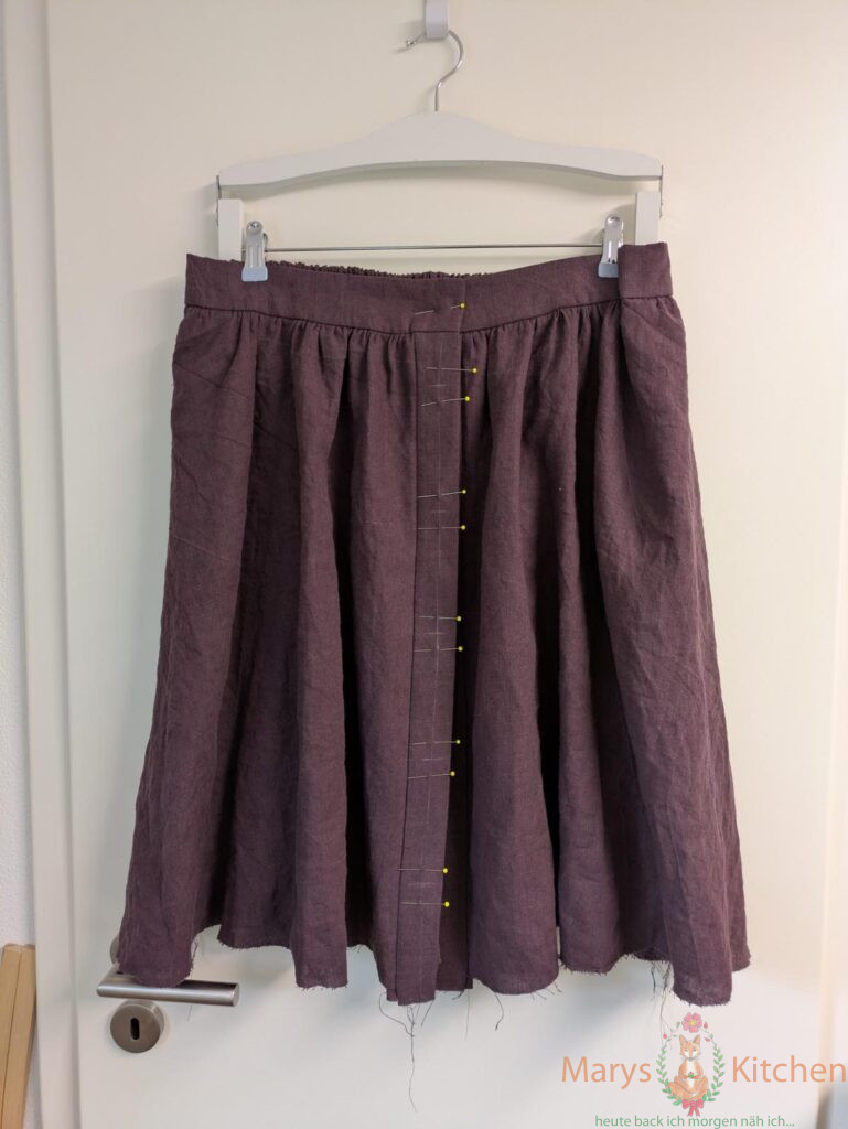 Ein Formbund würde wohl viel edler aussehen, aber müsste auch viel häufiger angepasst werden und so trage ich den Rock, bis er ständig rutscht und dann trenne ich die vielen Nähte auf der Rückseite auf und mach den Gummi kürzer. Das Absteppen hat aber den Vorteil, dass das Gummiband sich nicht drehen kann.