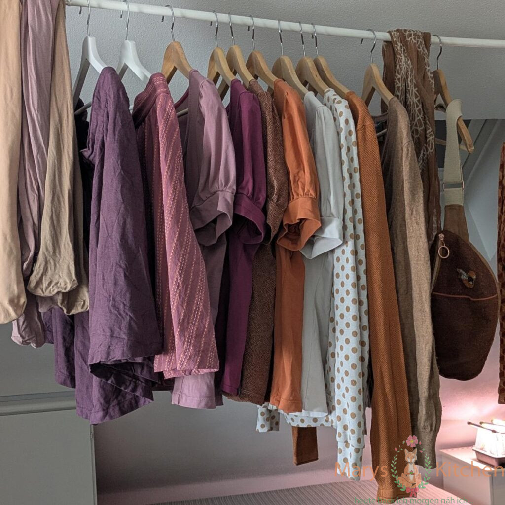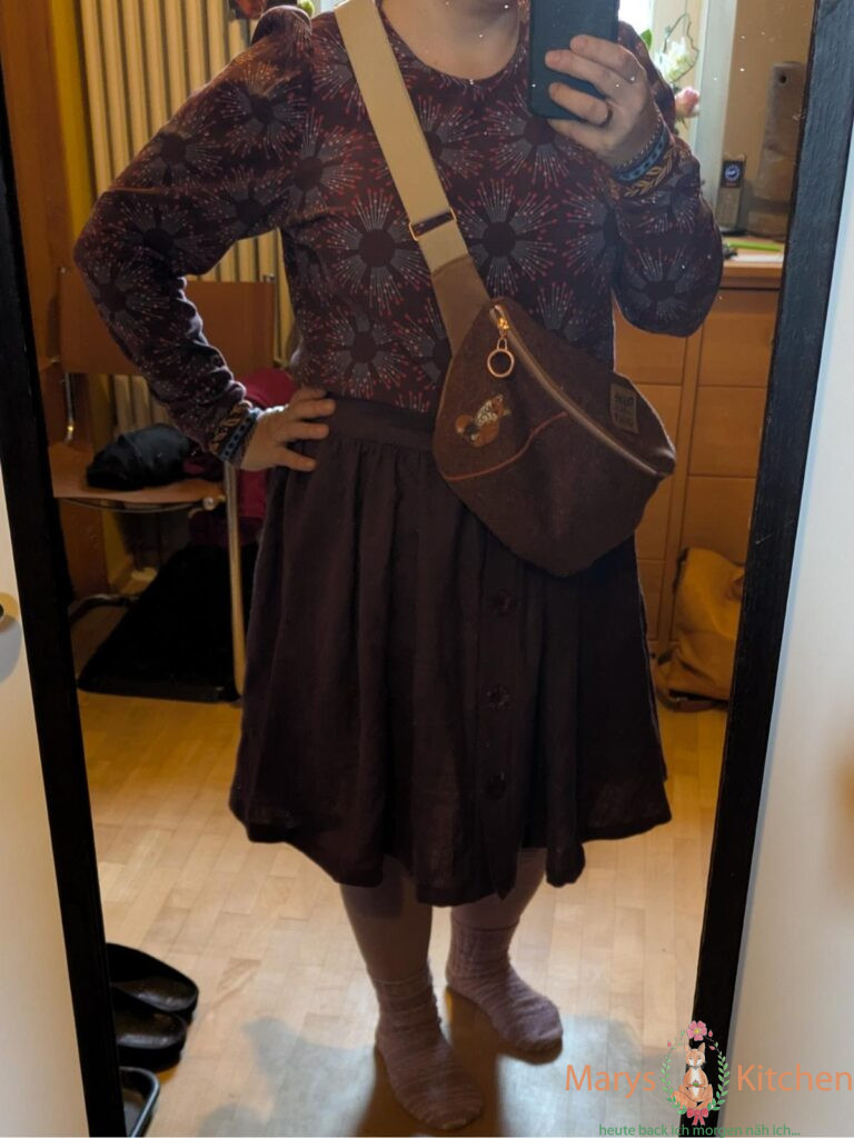 „bei anderen gesehen“ – eigentlich hätte ich keinen weiteren Rock gebraucht, aber dann habe ich einen sooo schönen lilanen auf Instragm gesehen, da wollte ich auch so einen. Meiner ist nun doch ein bisschen anders lila geworden, aber vielleicht passt er in dem gedeckten Farbton auch besser zu meiner Garderobe…