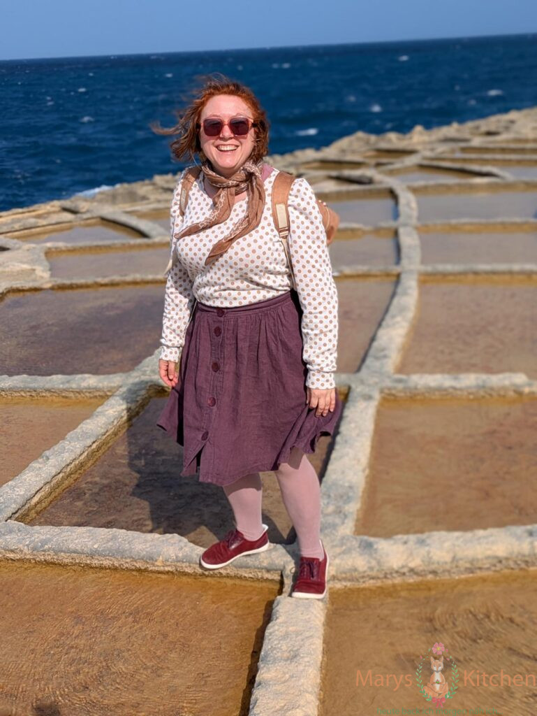 [hier auf dem Bild trage ich meinen neusten Rucksack, den hab ich letzten Sonntag hier gezeigt. Das war auf den Salzpfannen im Norden von Gozo]