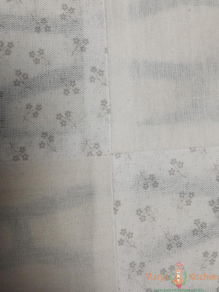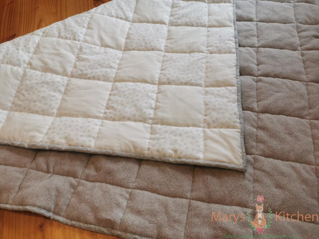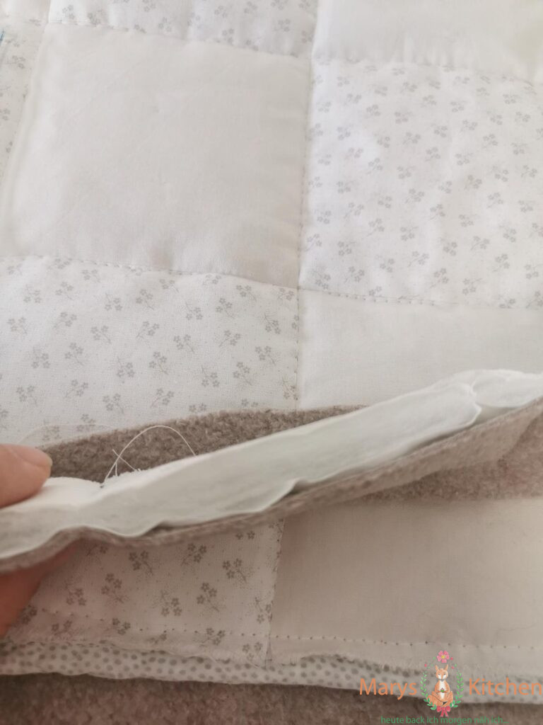Rückseite ist ein etwas elastischer Baumwollfleece der leider ein paar kleine Falten beim Quilten bekommen hat.