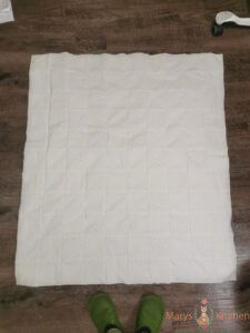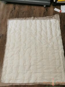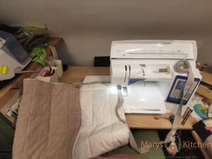 Als Füllung hab ich eine Ikea Kinderbettdecke genommen und diese + alle Stoffe bei 60 Grad vorgewaschen und in den Trockner gegeben.