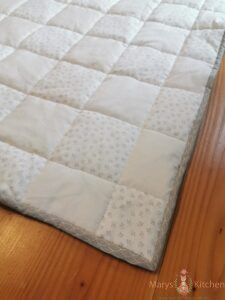 Ich hab einen Fehler gemacht und gefragt, was eine werdene Mutter sich wünscht. Krabbeldecke. Ok, krieg ich hin. Voll motiviert suchte ich Patchworkmuster raus. Welche Farben? Puh, beige…..ähm, ja…
