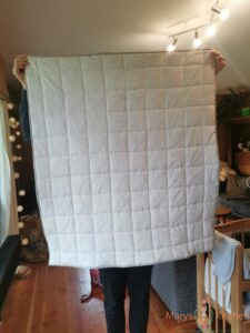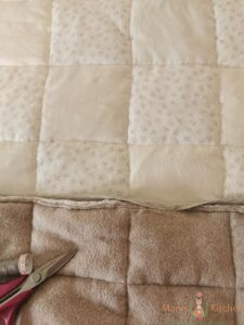 Rückseite ist ein etwas elastischer Baumwollfleece der leider ein paar kleine Falten beim Quilten bekommen hat.
